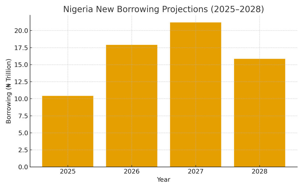 The medium-term fiscal framework also reveals that Nigeria plans even larger borrowings in subsequent years. In 2027, new loans may rise to ₦21.18 trillion, before moderating to ₦15.84 trillion in 2028. Cumulatively, the government expects to raise ₦54.91 trillion in new loans between 2026 and 2028.